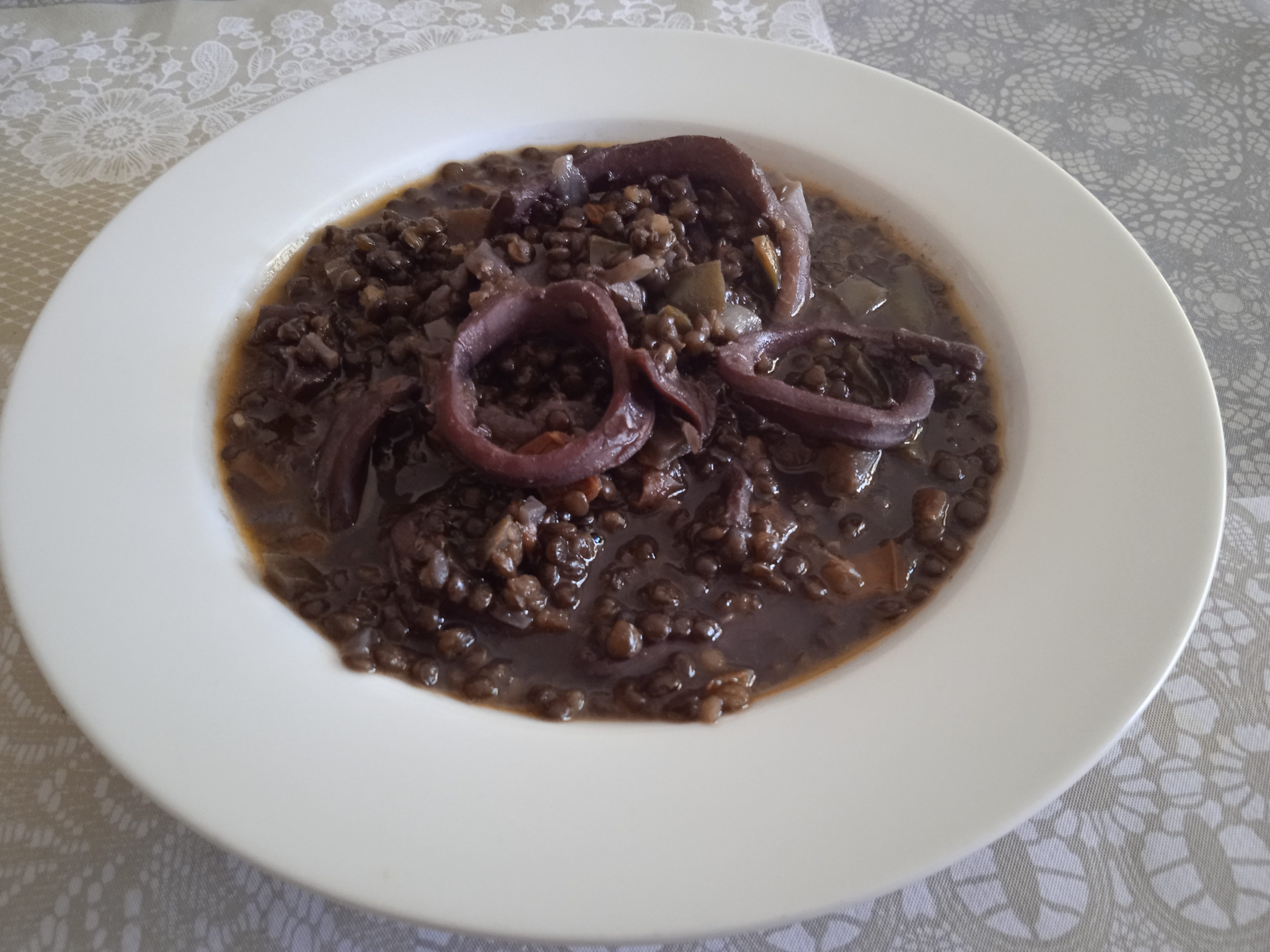 LENTEJAS NEGRAS CON CALAMARES.