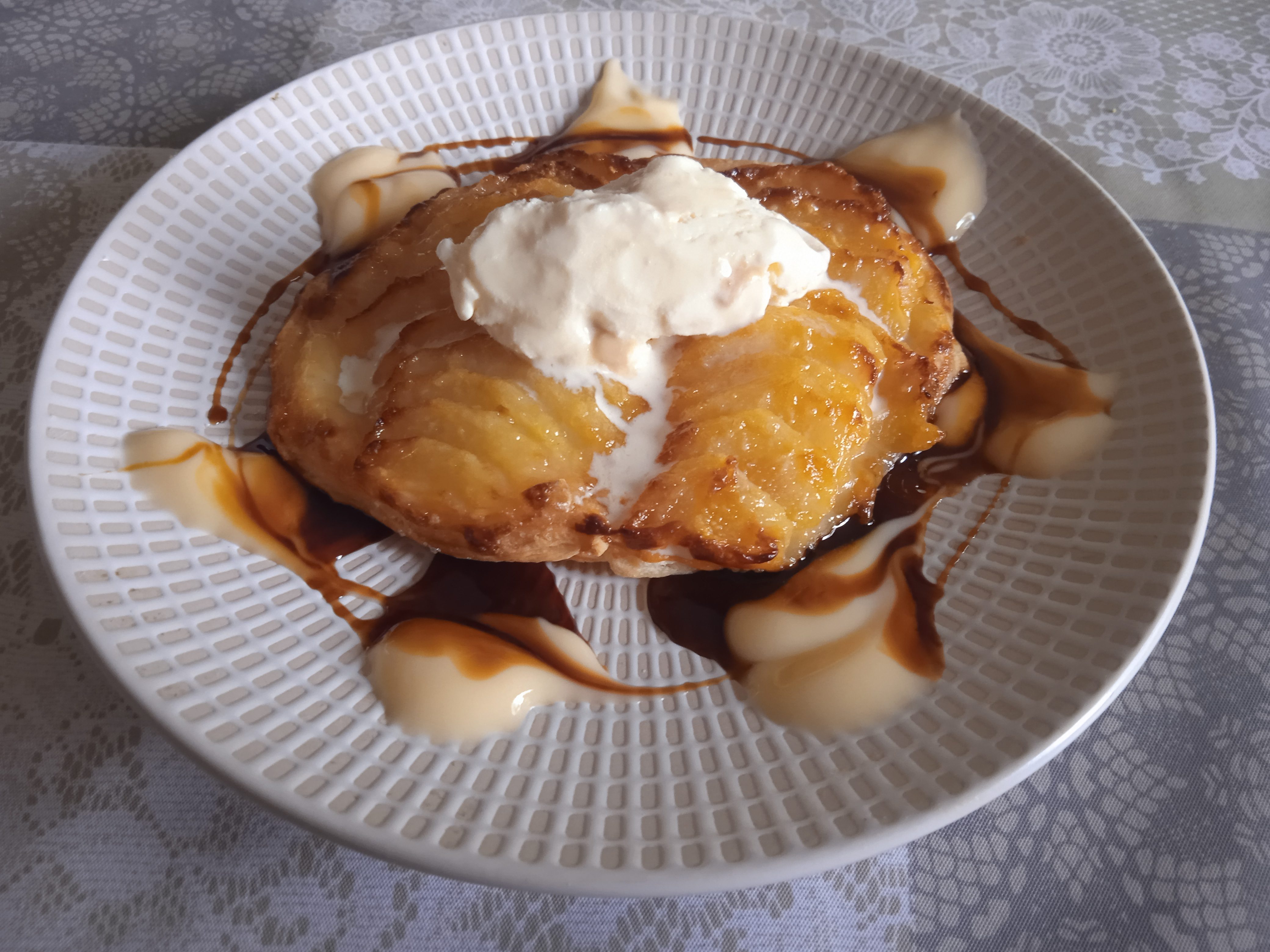 HOJALDRE DE PERA CON HELADO DE VAINILLA FÁCIL Y RÁPIDA.
