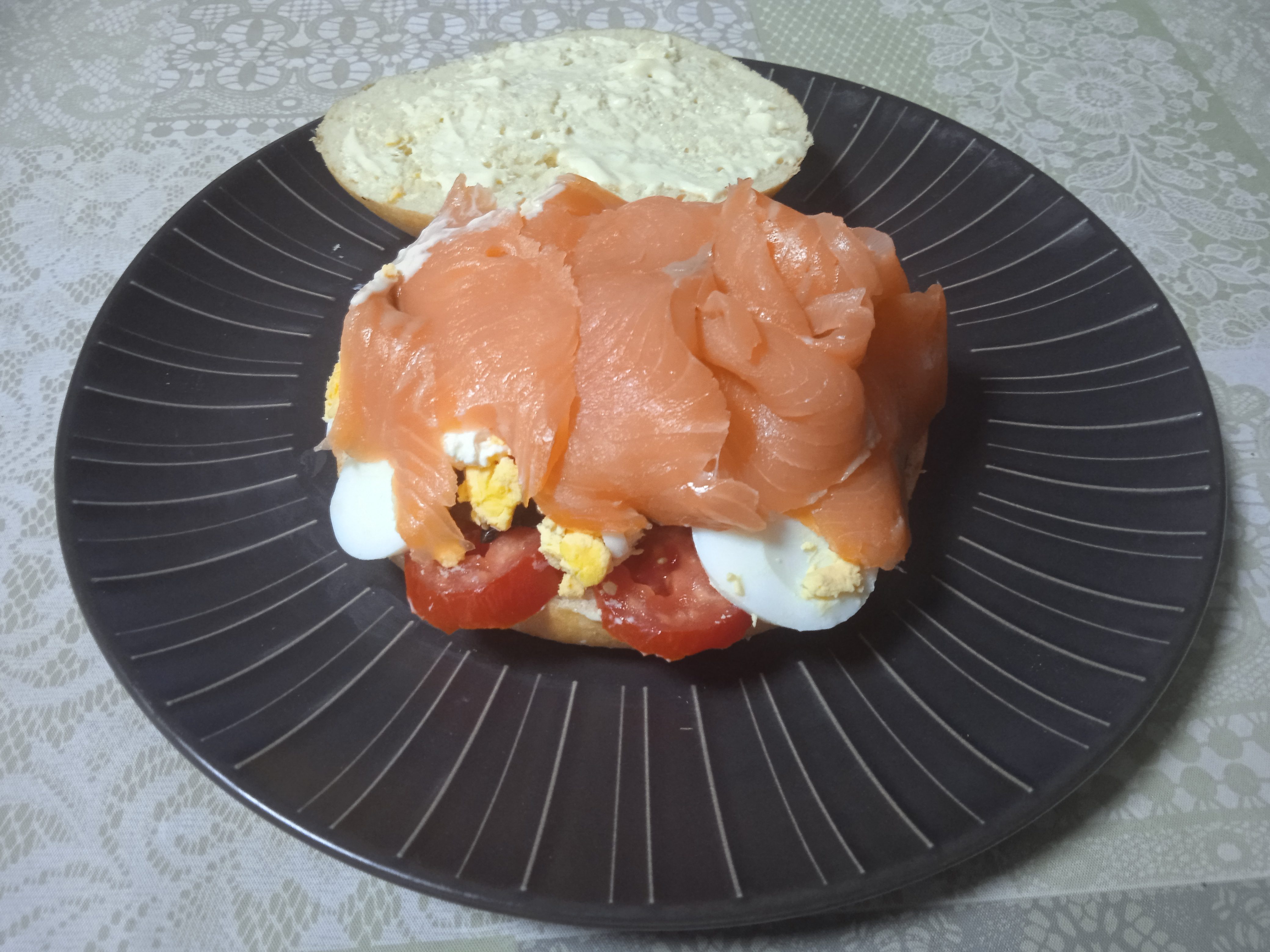 Salmón Ahumado, hoy vamos a hacer un mollete que está delicioso. Con este ingrediente, que aparte del salmón ahumado, también lleva huevo duro, pepinillo, crema de queso y lechuga. También podemos ponerle aguacate que le va muy bien al salmón…